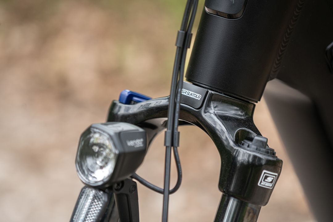 Čistý vzhled kola zajišťuje elegantní integrace bowdenů přímo do hlavové trubky. Nepohodlí na nerovných cestách nehrozí díky vidlici SR Suntour XCM32 se zdvihem 120 mm, zatímco bezdušové ráfky Remerx a pláště Schwalbe Smart Sam Skinwall poskytují skvělou přilnavost a stabilitu.