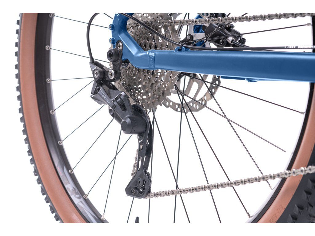 Kvalitní rám z hliníkové slitiny zaručuje pevnost a stabilitu, zatímco čistý design s integrovaným vedením kabeláže do hlavové trubky dodává kolu elegantní vzhled. O komfortní jízdu se stará vzduchová vidlice SR Suntour XCR32 Boost LOR se zdvihem 120 mm, která spolehlivě filtruje nerovnosti jak v terénu, tak na cestách.